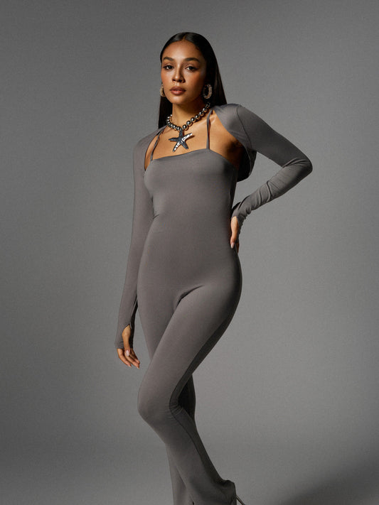 Brixander Spaghetti Jumpsuit In Grey With ShrugRegular price £75.00Regular price £75.00 Sale priceUnit price per£0.00