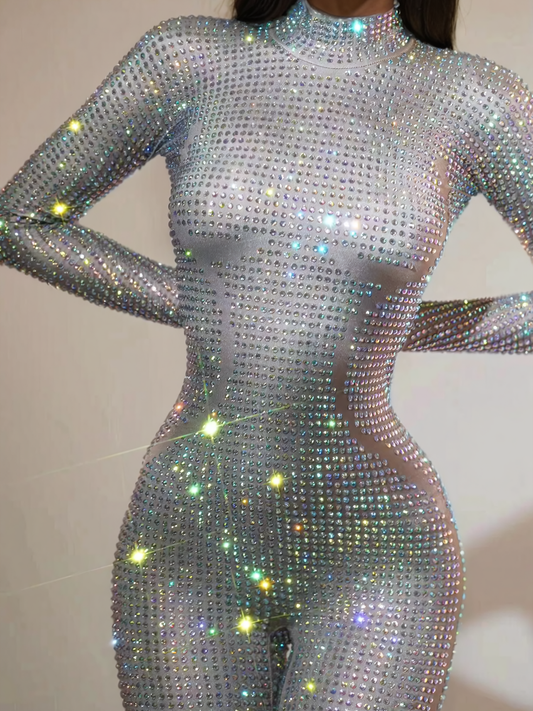 Chesten Long Sleeve Rhinestone Embellished Jumpsuit