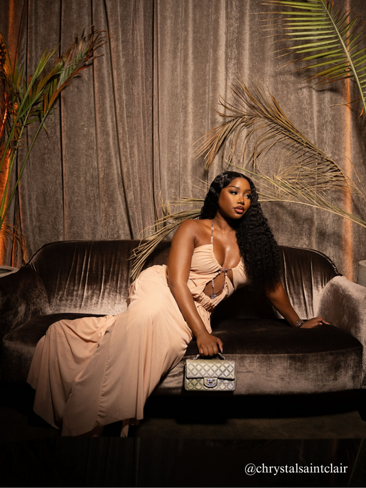 Damla Spaghetti Acrylic Chainmail Split Dress