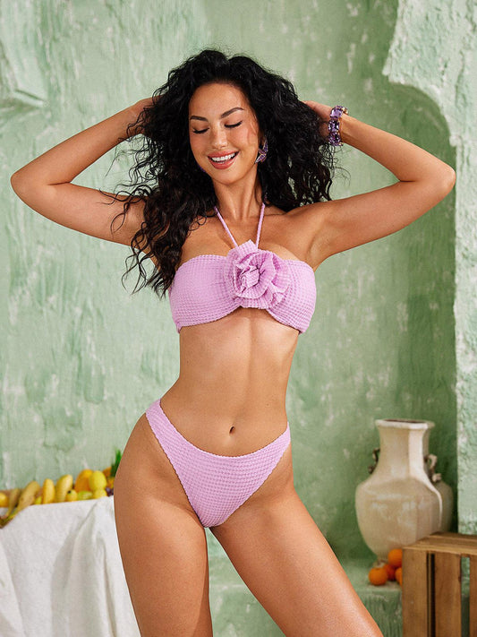 Josue Acrylic Embellished Bikini Two Piece Set In Purple