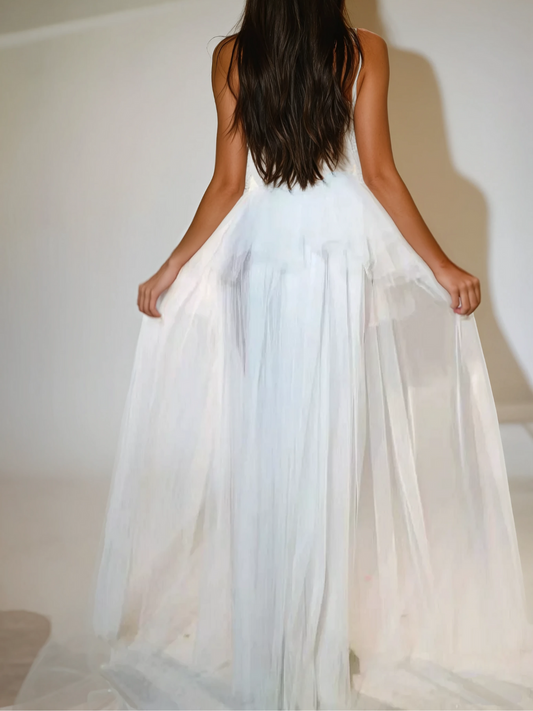 Kalene Strapless Ruffle Tulle Skirt Set In White