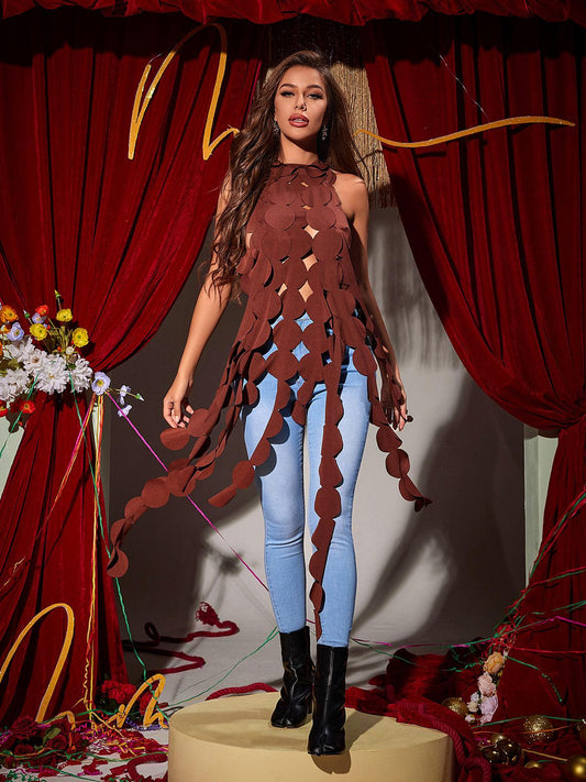 Nyx Backless Circle Cutout Fringe Top In BrownRegular price £85.00Regular price £85.00 Sale priceUnit price per£0.00