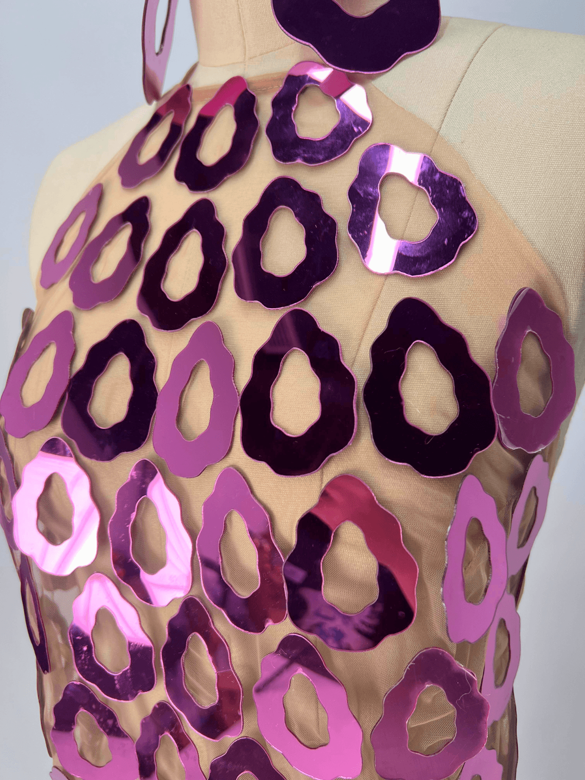 The Badel Halterneck Acrylic Mesh Mini Dress is a must-have for any fashion-forward individual. Designed with a modern halterneck style and made from high-quality acrylic mesh material, this dress is both stylish and comfortable. With its unique design, it's perfect for any occasion. Elevate your wardrobe with this versatile and trendy dress.