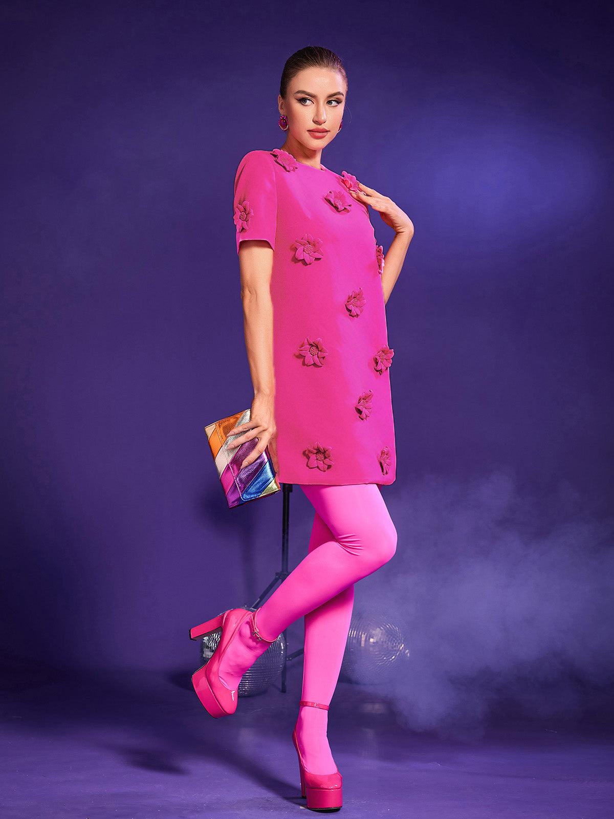 This Dashiell Short Sleeve Floral Embellished Mini Dress is a stylish choice for any occasion. It features a beautiful floral embellishment, crafted from light fabric for exceptional comfort. This dress is a great way to look chic and classy.