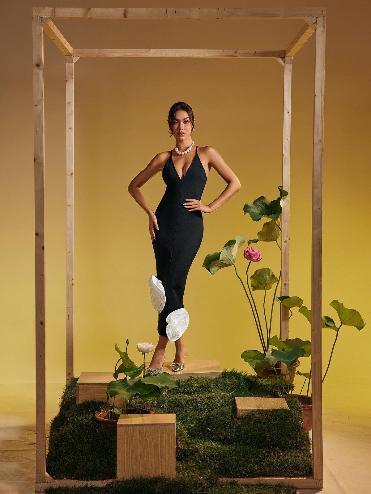 Feel confident and beautiful in the Elihu Spaghetti Flower Bandage Midi Dress! Made with high-quality fabric and a flattering bandage design, this dress will hug your curves and accentuate your figure. The delicate spaghetti straps and lovely flower pattern add a touch of femininity. Perfect for any occasion, this dress is sure to make you stand out in style.