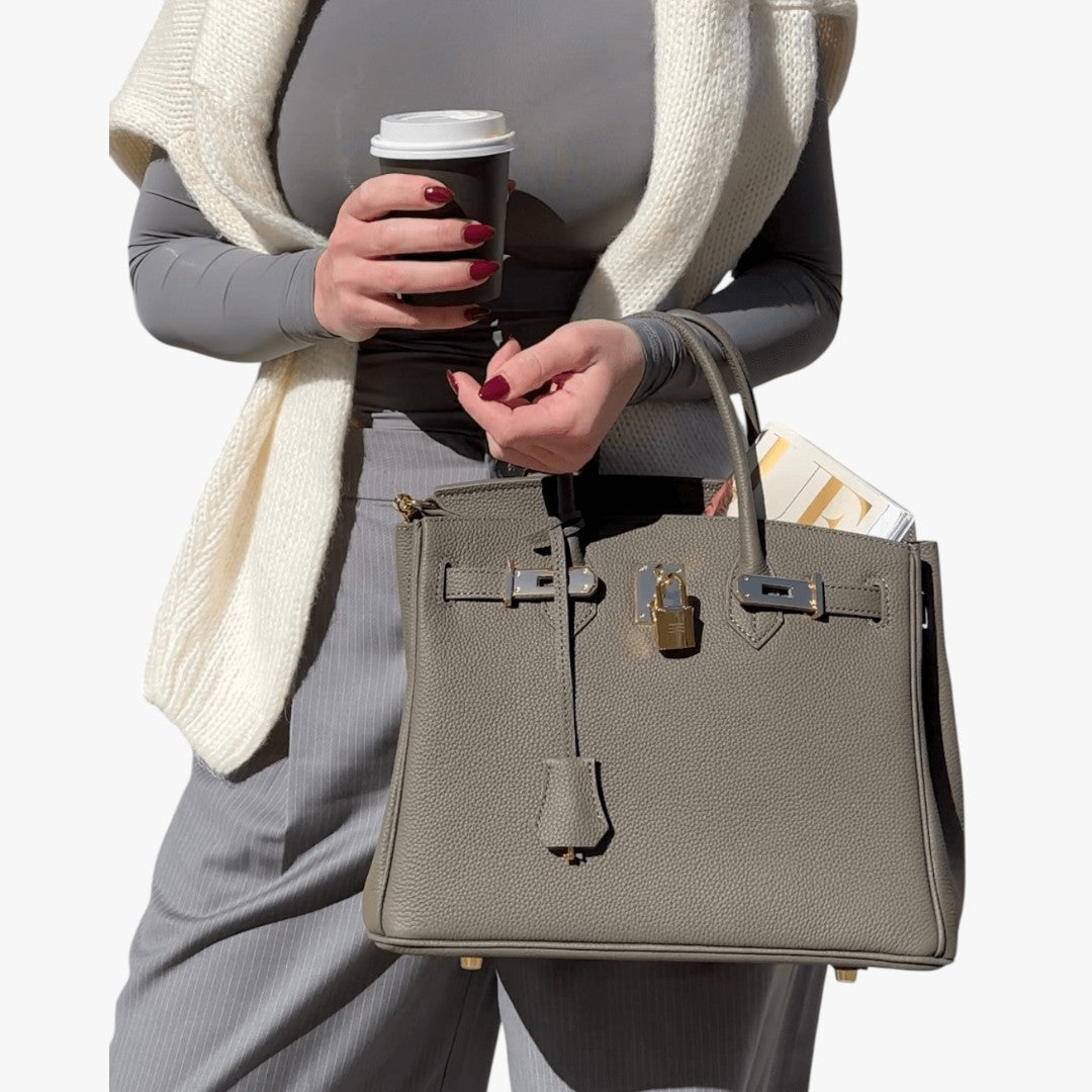Elevate your style with the Leather Handbag for Women. Crafted from leather, this timeless handbag exudes sophistication and elegance. The sleek, structured design is complemented by a gold-toned lock and strap details, adding a touch of luxury. Perfect for both daily use and special occasions, this handbag offers ample space for your essentials, combining both fashion and functionality in one sophisticated accessory.