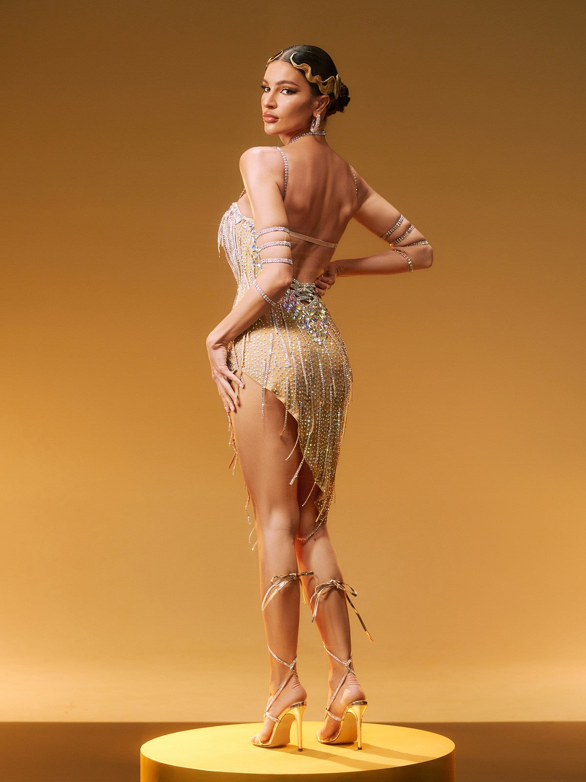 Experience luxury and glamour in our Kai Spaghetti Crystal Fringe Mini Dress! Designed with delicate spaghetti straps and stunning crystal fringe detailing, this dress will make you stand out in any crowd. Perfect for special occasions or a night out, radiate confidence and elegance in this statement piece.