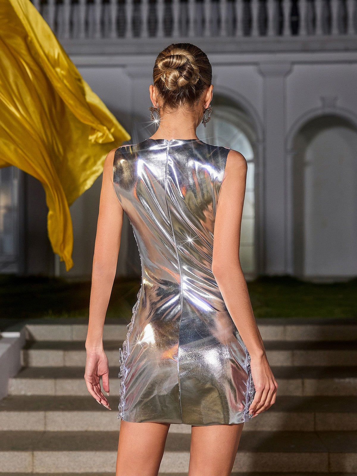 Elevate your style with the Myxenna Embellished Mesh Mini Dress. This stunning dress features intricate embellishments on sheer mesh fabric, giving you an elegant and unique look. Perfect for special occasions, this dress is sure to make a statement and leave a lasting impression.