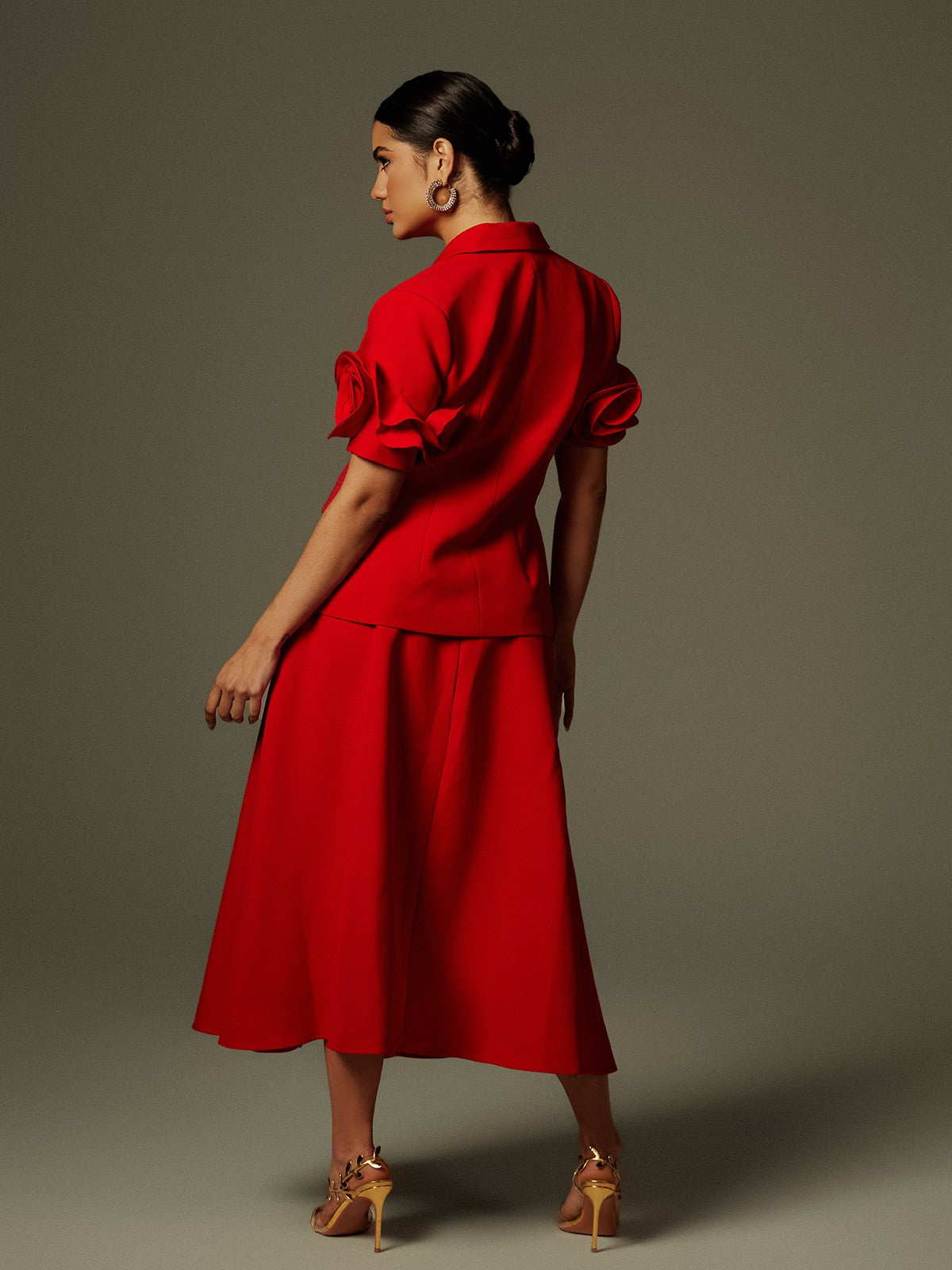 Naniel Short Sleeve Button Up Flower Blazer Set
