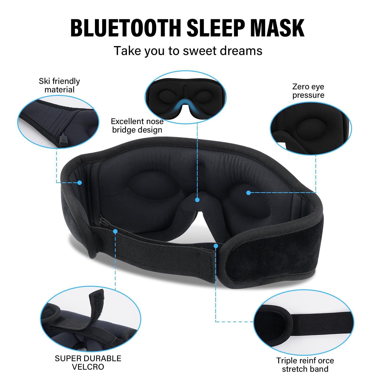 - 【Sleep Mask with Bluetooth Headphones & Sleeping Eye Mask】Morelax bluetooth sleep mask features a eye mask designed with wireless speakers headset inside,the bluetooth sleeping Headphones combines eye mask and headphones that pefect as sleep headphones.The sleep mask headphones allow you to enjoy hands free music during your sleeping time and protect you from being disturbed by your mess hair. Bluetooth eye mask is perfect for nap,insomnia, air travel, meditation and yoga.