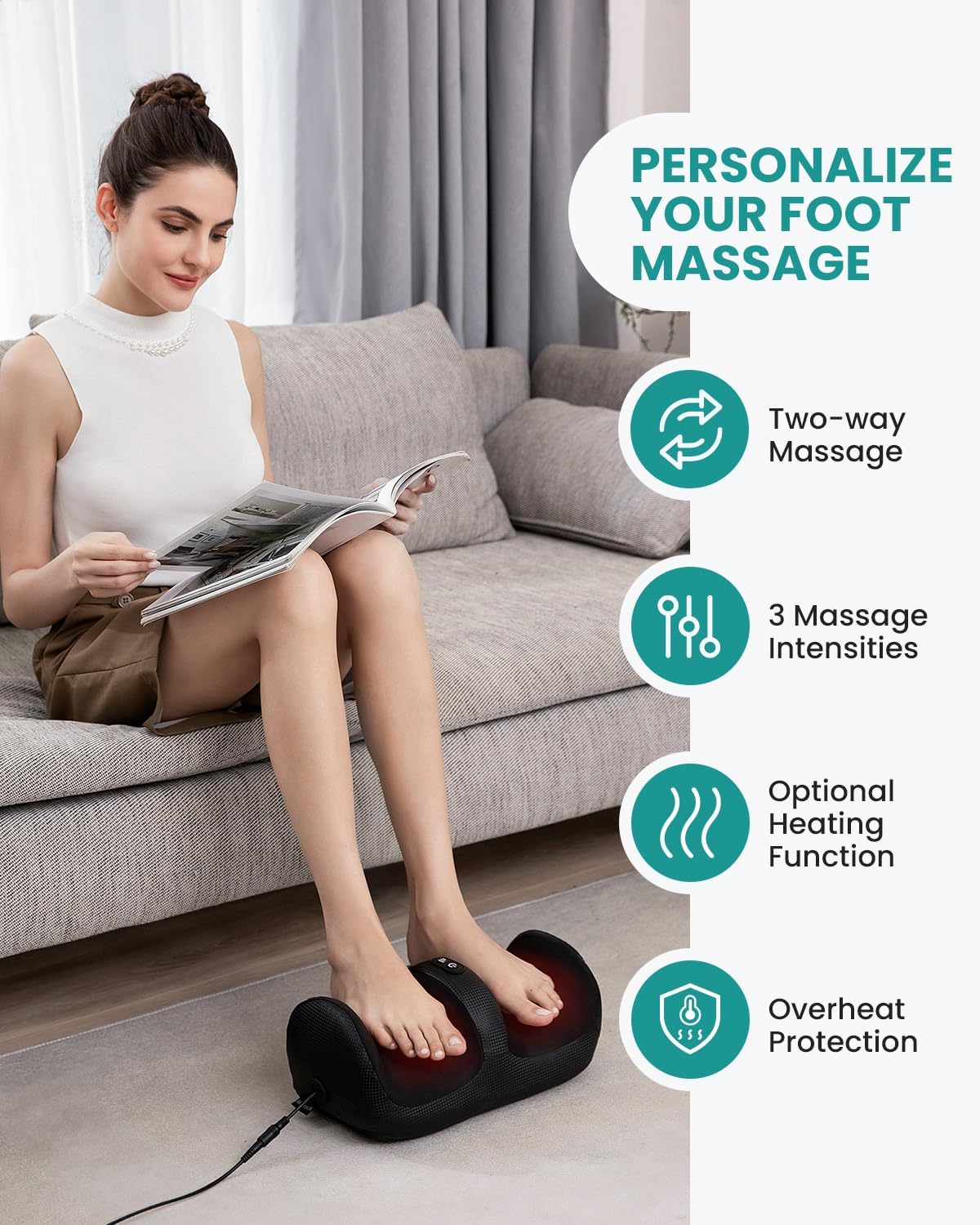 Transform your living room into a personal spa with the Nexus FootMassager™. Its gentle shiatsu massage rejuvenates tired feet and calves, offering an escape from daily stress without leaving home.
