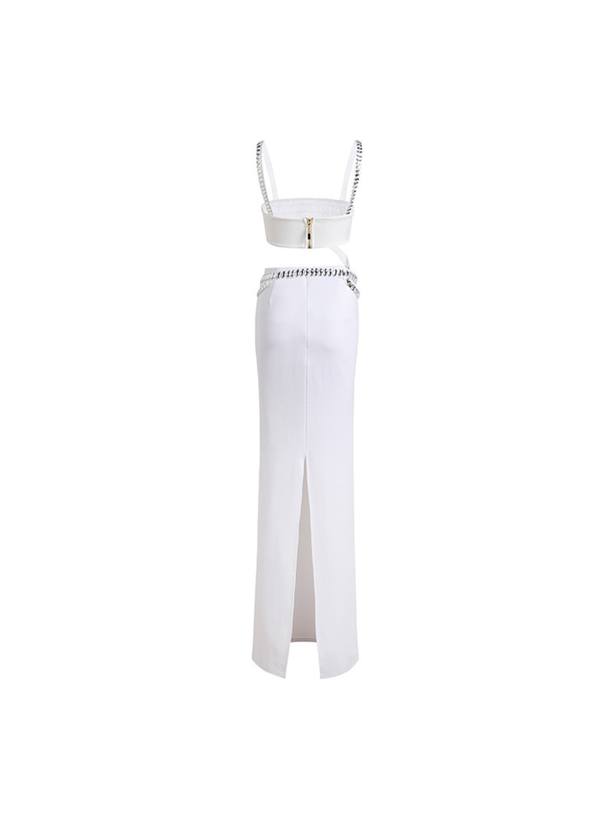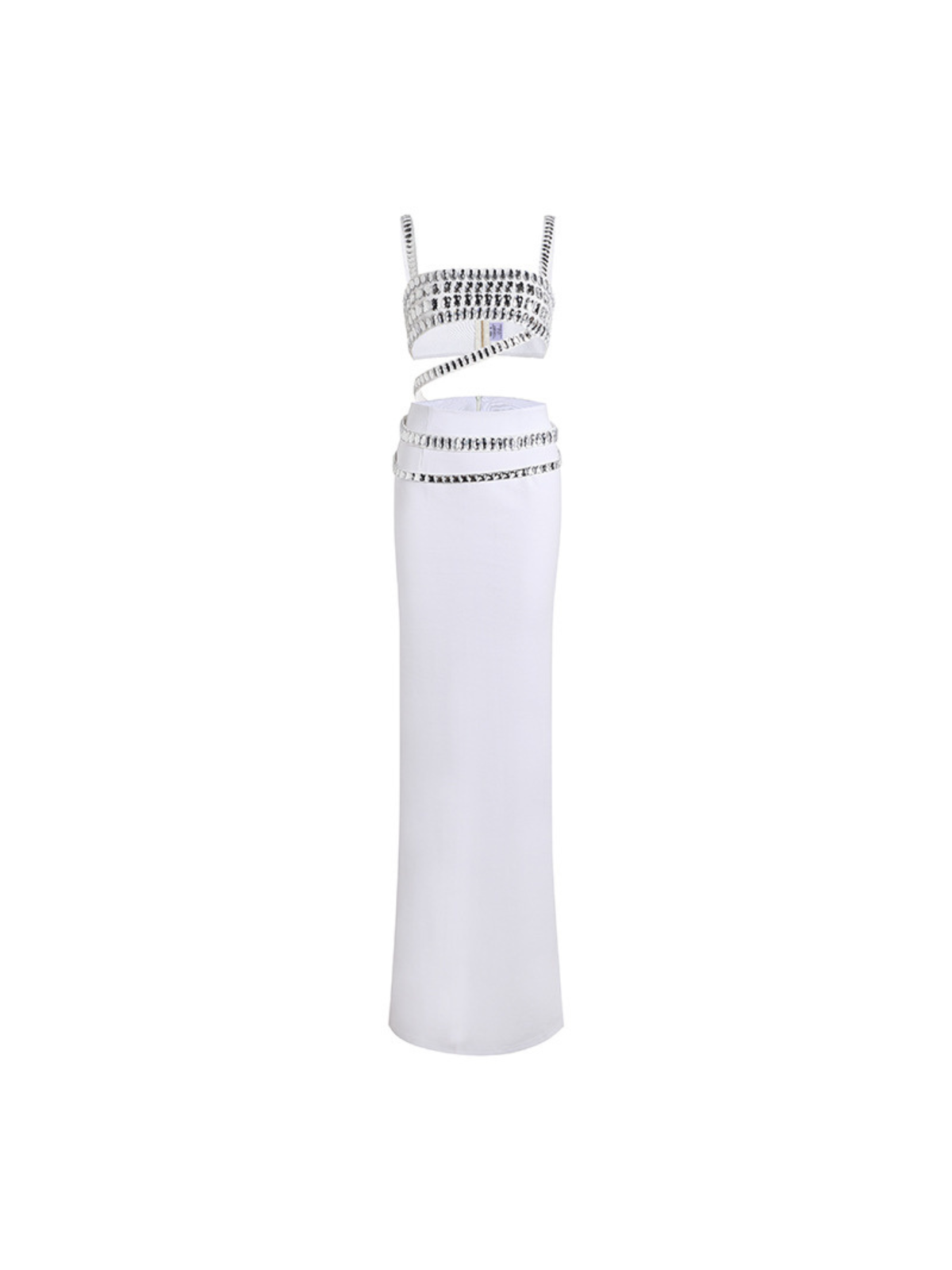 This Siouxsie Rhinestone Bandage Skirt Set features a stunning rhinestone design for a touch of glamour. The form-fitting bandage skirt accentuates your curves, making you feel confident and stylish. Upgrade your wardrobe with this must-have set, perfect for any special occasion.