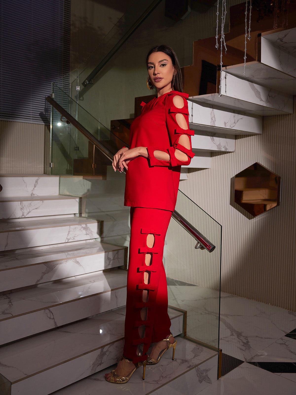 Sunni Long Sleeve Bow Cutout Pants Set