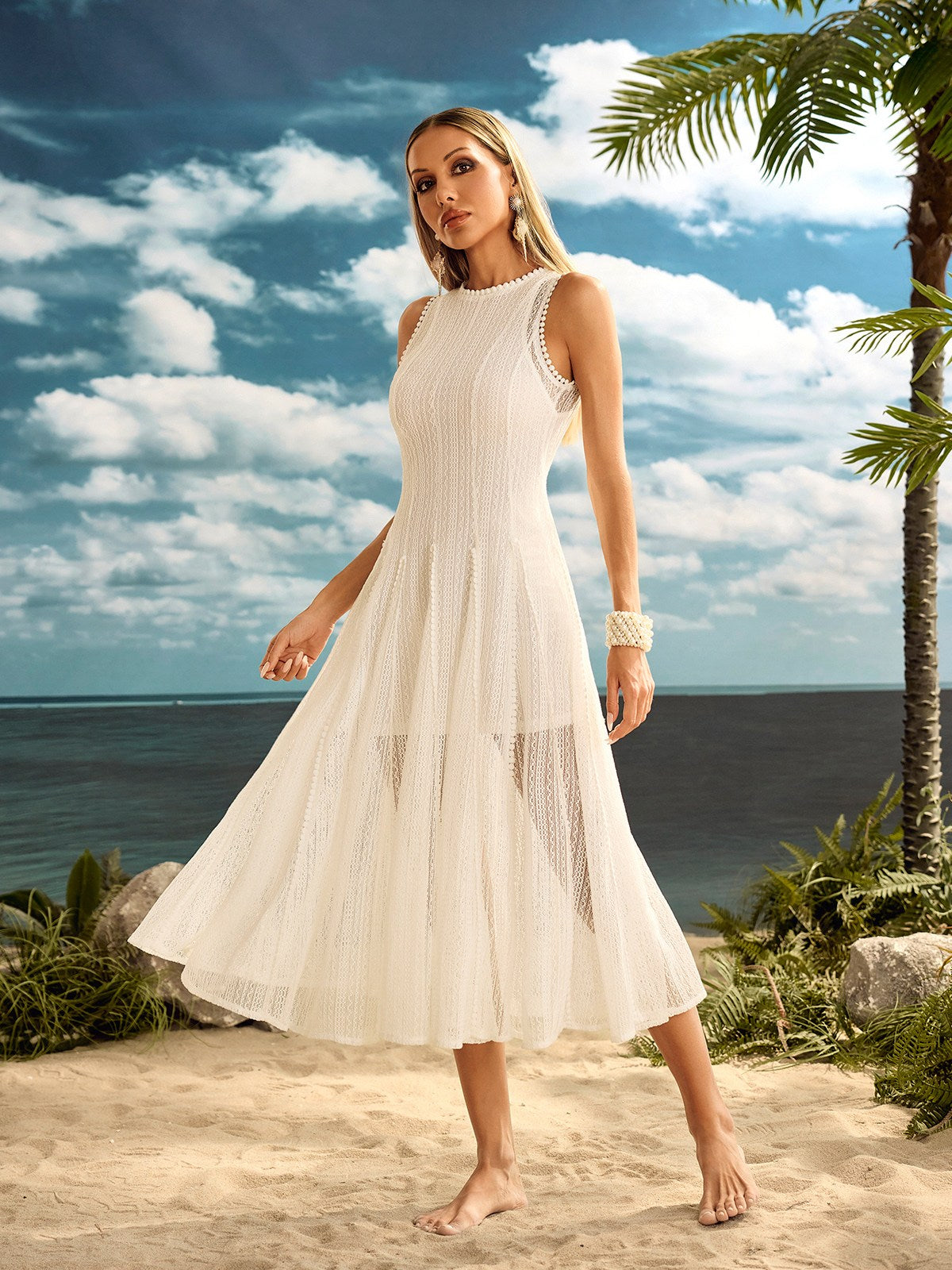 Zalvryn Sleeveless Knitted Midi Dress In White
