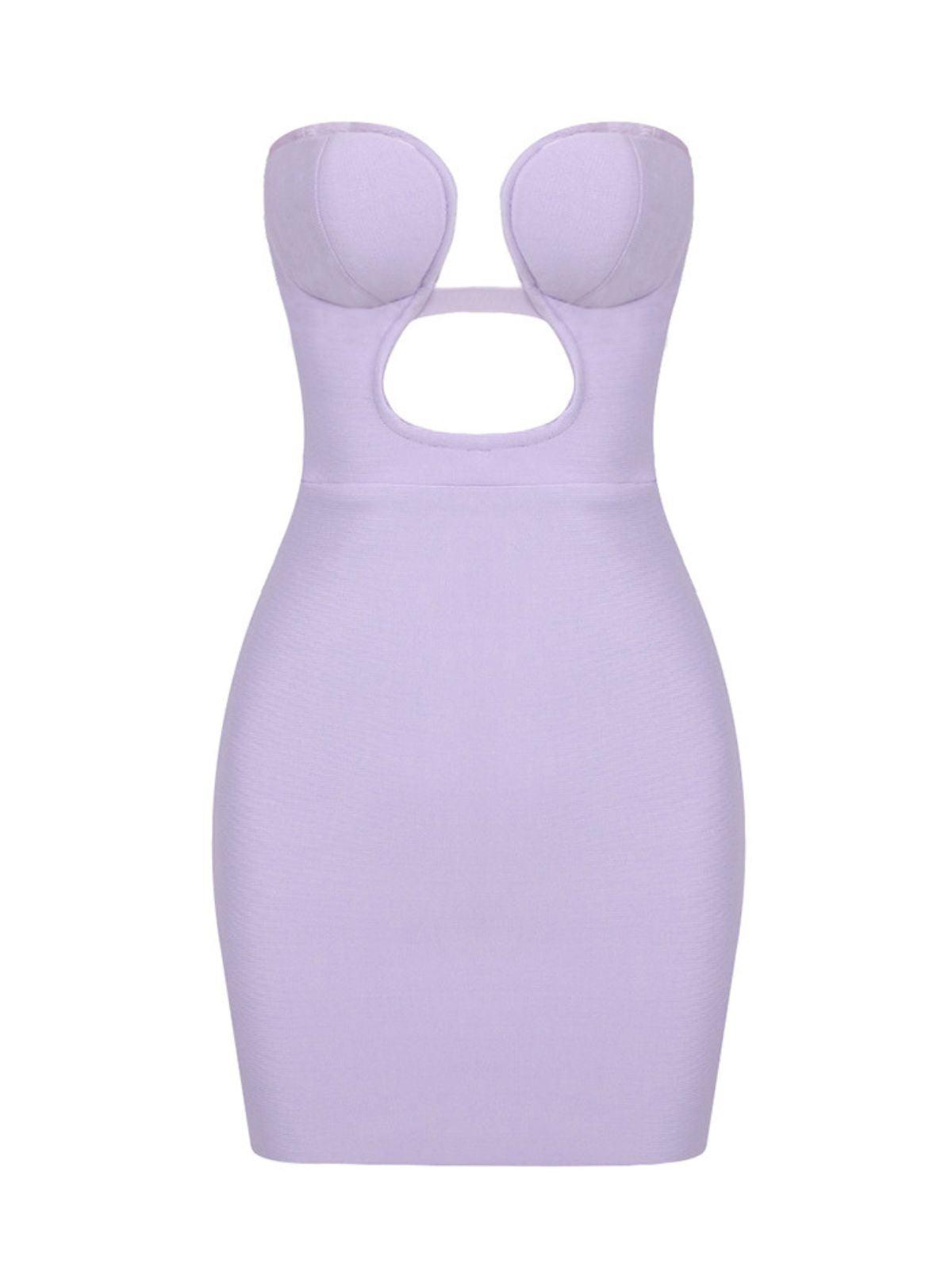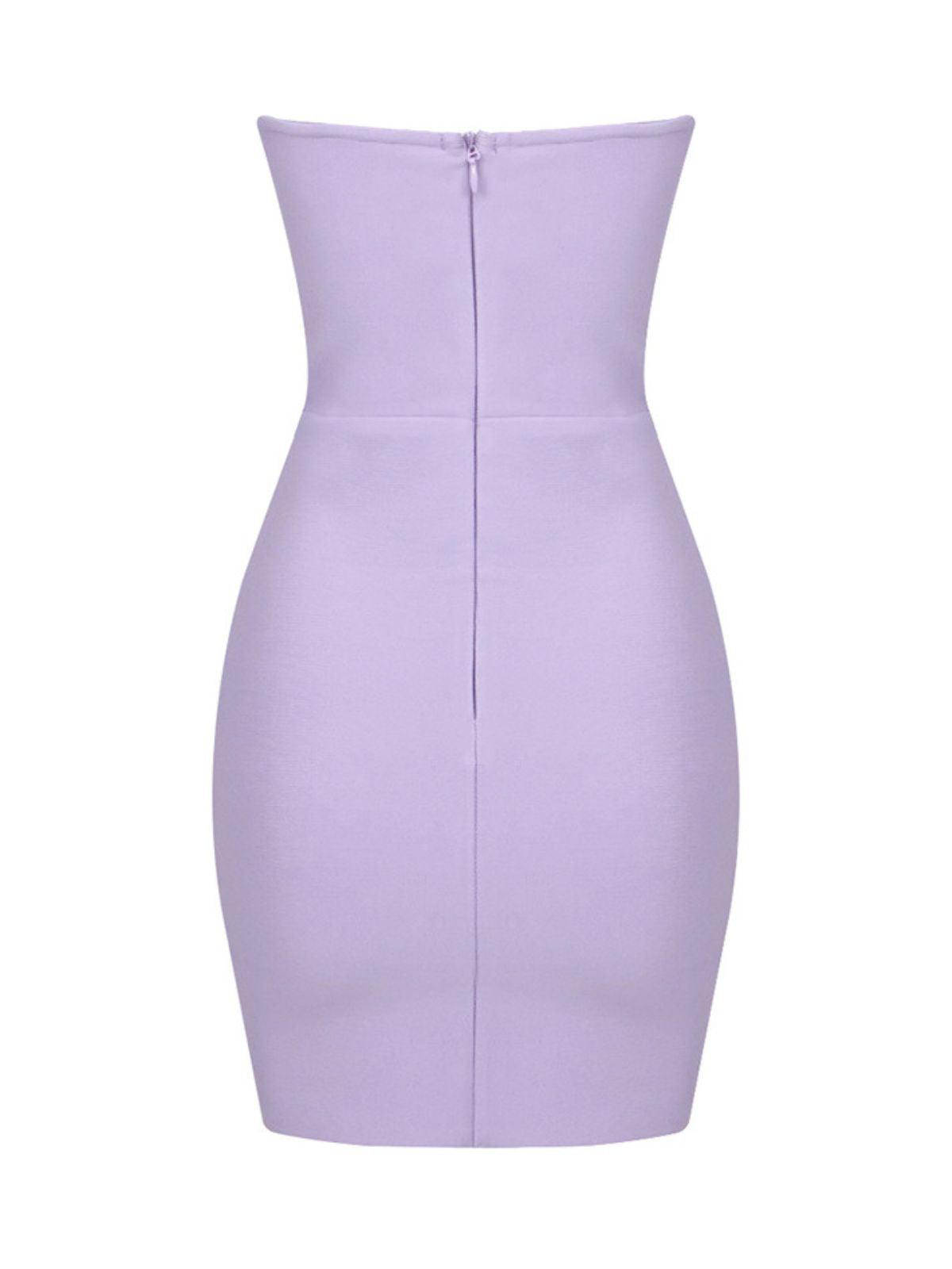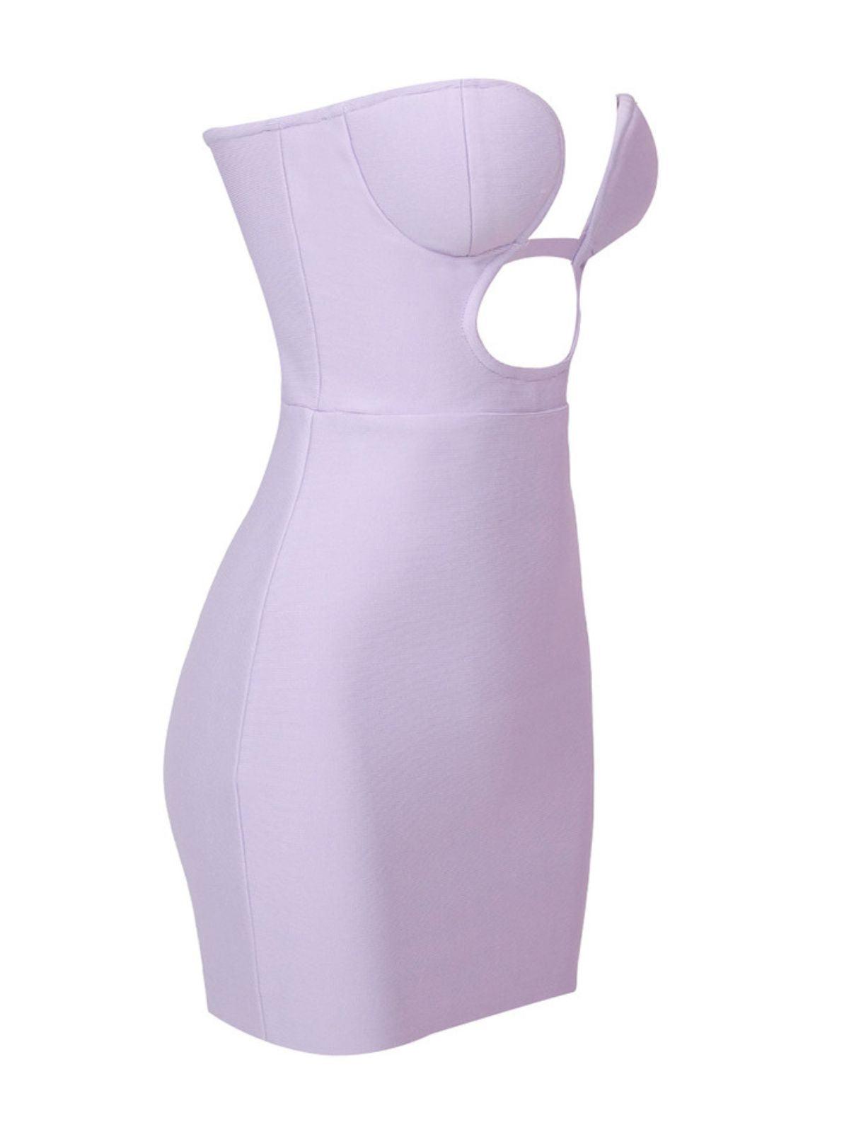 This Zander Strapless Cutout Bandage Dress In Lilac is perfect for adding a unique, fashion-forward style to any wardrobe. Made with lilac color fabric, this sophisticated dress features a comfortable, snug fit that is sure to flatter any figure. With a sleek, cutout design to complete the look, this dress is perfect for those seeking a refreshingly modern look.